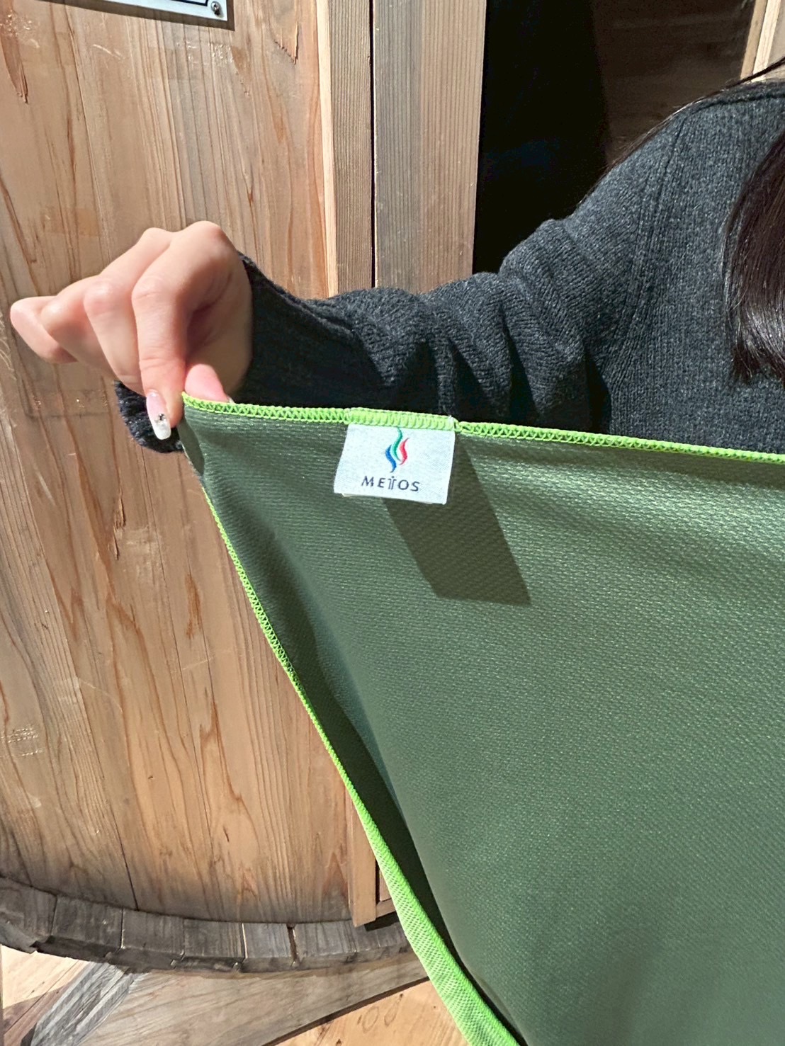 アウトドアサウナを楽しんだ後、火照った体にうってつけのメトスロゴ入り冷感タオルです!